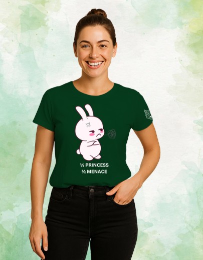 This design throws shade at "playing nice." Front and center is a super cute bunny, ticking off its frustration with a pout and a tangled thought cloudâproof that being adorable doesnât mean youâre always innocent. The split caption, â½ PRINCESS ½ MENACE,â is a shoutout to all the bold girls who are equal parts sweetness and storm. Because why pick one when you can be both?