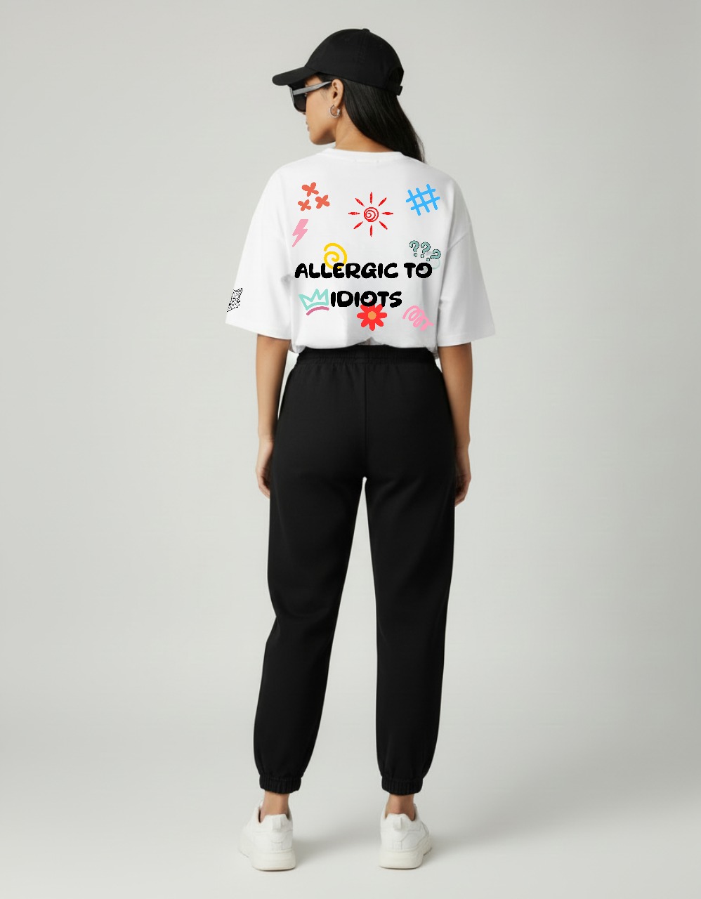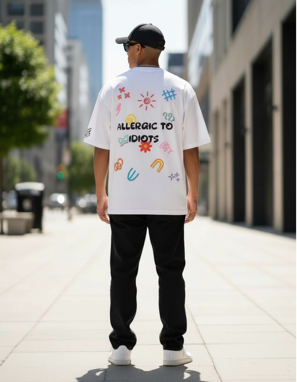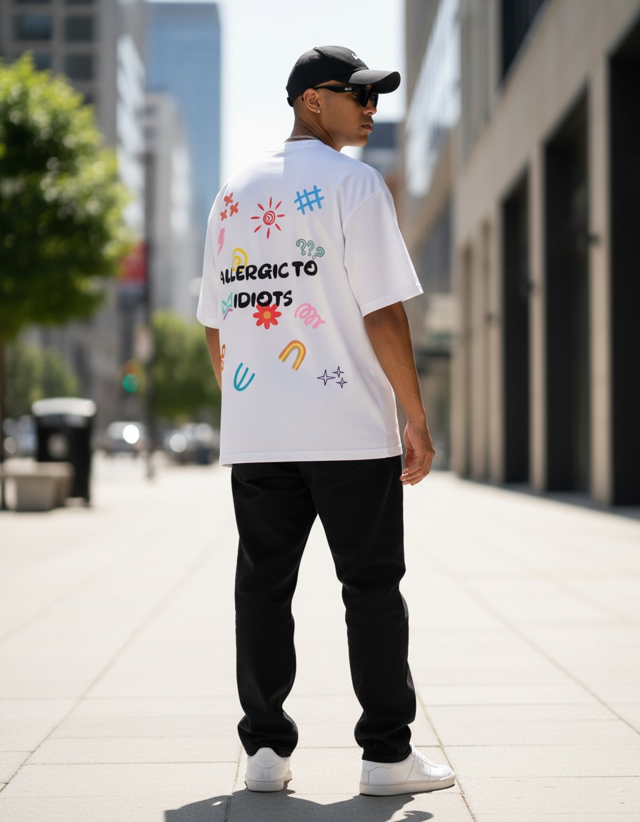 Allergic To Idiots is for the unapologetically blunt. This unisex oversized ArmorDrop tee lays out your boundary in bold letters, surrounded by playful doodles and chaotic icons that keep the vibe fun while the message stays loud. Cut with a roomy streetwear fit, it delivers day-long comfort and statement-making presence for anyone done entertaining nonsense.