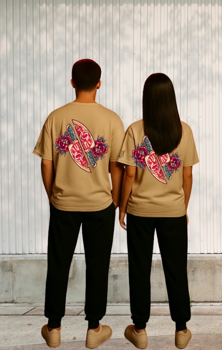 Blood Blade Bloom is a collision of edge and elegance, inspired by fearless flows where sharpness and style collide. The stunning back print mixes rose blooms with a split blade, repping Gen Z’s drive to push through pain and let beauty burst from every challenge. It's the tee for creators who live for the extra, making every struggle a moment to flex growth and greatness.